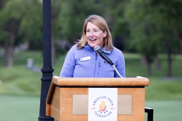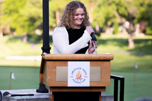 President Liz Marshall and Board Chair DD Danforth Burlin both welcomed and thanked the golfers for their continued support, and National Leadership Conference participant Emma Roberts made the biggest impact during the post-game program. She shared how her time at NLC helped her connect with a strong, caring community and inspired her to lead.