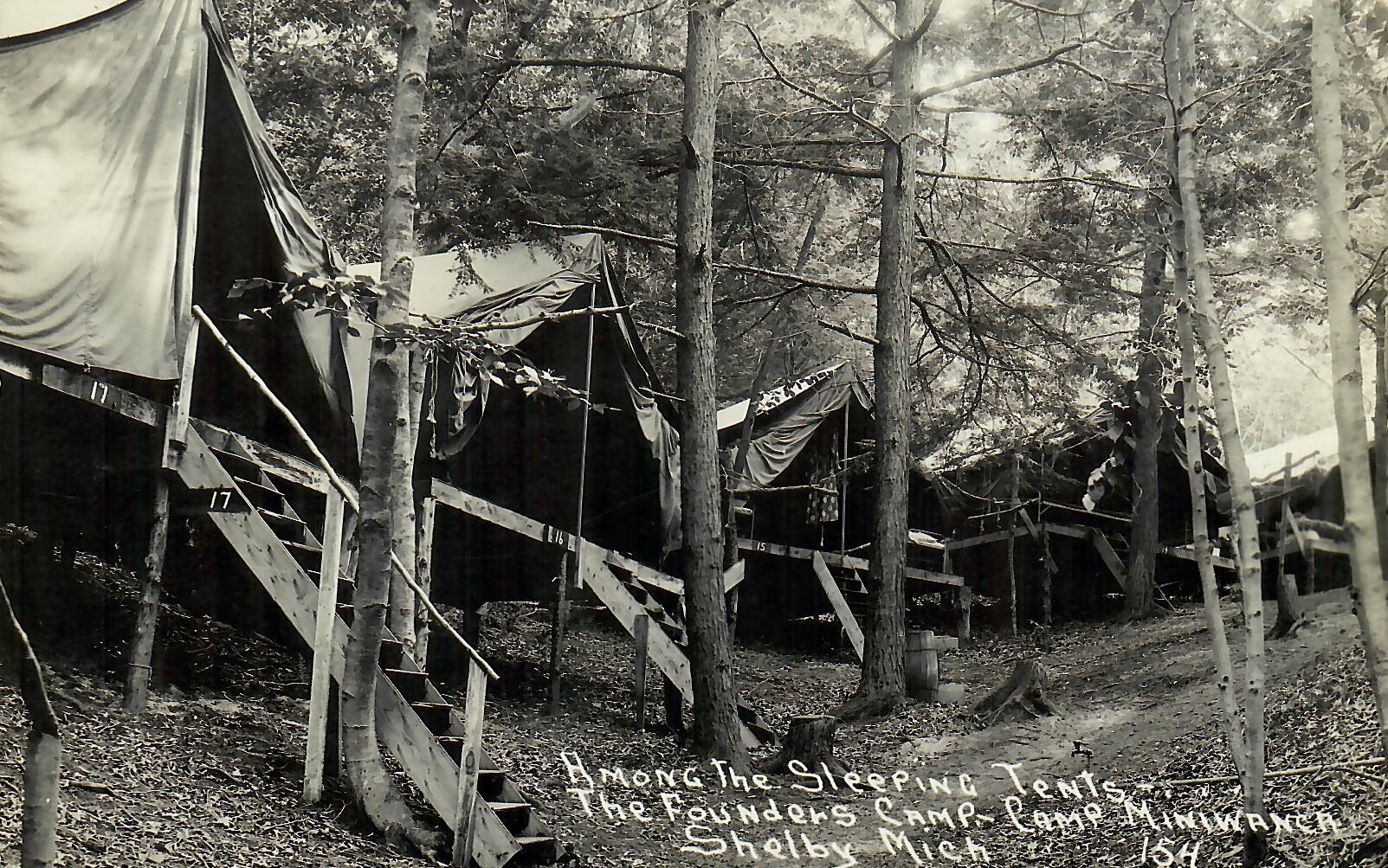 The founders acquire property in Stony Lake, Michigan, which they call Miniwanca. This name came from conversations with Native Americans in the region and was originally translated as the “Big Sea Camp,” a nod to the presence of Stony Lake and Lake Michigan, which are linked by Stony Creek. Construction of Miniwanca, including clearing the land and the building of bridges and tent platforms, occurs between March and June. The Assembly building is started, and the first eating lodge built.