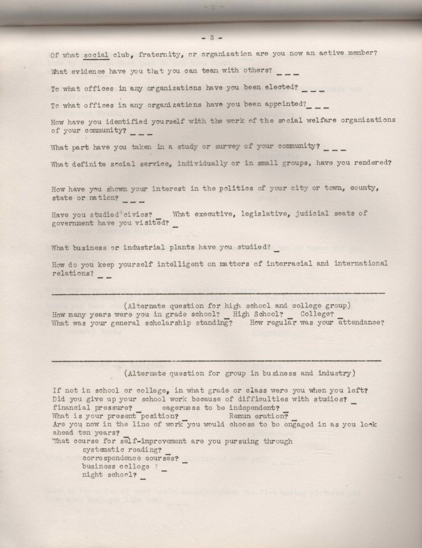 [9] The American Youth Foundation, Questionnaire Procedure, 1947, p. 3.
